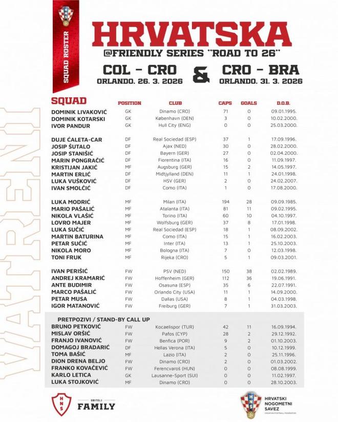 消息來源:克羅地亞國傢隊官方